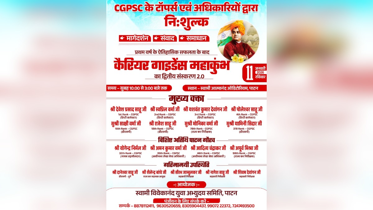युवा दिवस पर पाटन में कैरियर गाइडेंस महाकुंभ 2.0, CGPSC टॉपर्स देंगे निःशुल्क मार्गदर्शन