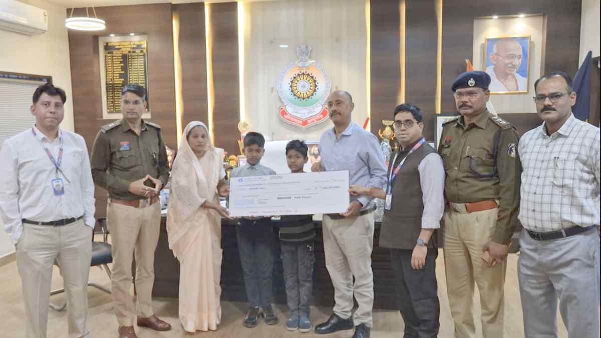 ड्यूटी से लौटते समय हादसे में शहीद आरक्षक की पत्नी को मिला 1 करोड़ का बीमा चेक