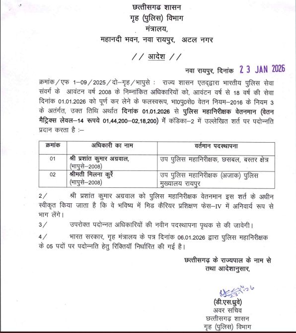 CG IPS Promotion Order: छत्तीसगढ़ में IPS अधिकारियों की बड़ी पदोन्नति, ADG से लेकर IG-DIG तक जारी हुआ आदेश