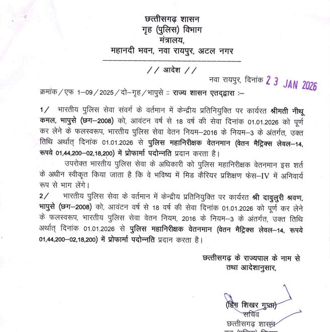 इस संबंध में भारत सरकार के गृह मंत्रालय से 6 और 9 जनवरी 2026 को स्वीकृति प्राप्त हुई थी, जिसके बाद राज्य सरकार ने पदोन्नति आदेश जारी किए हैं।