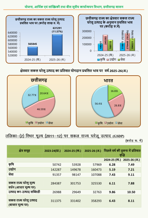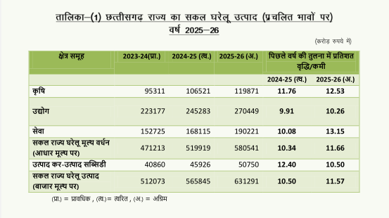 वर्ष 2025-26: GSDP में 11.57% वृद्धि का अनुमान