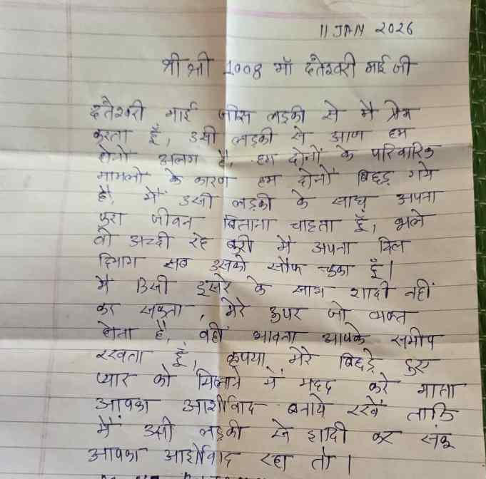 इसी पत्र में युवती ने अपने प्रेम का जिक्र करते हुए यह भी लिखा कि वह एक लड़के से प्यार करती है और चाहती है कि दोनों परिवार उनकी शादी के लिए मान जाएं।