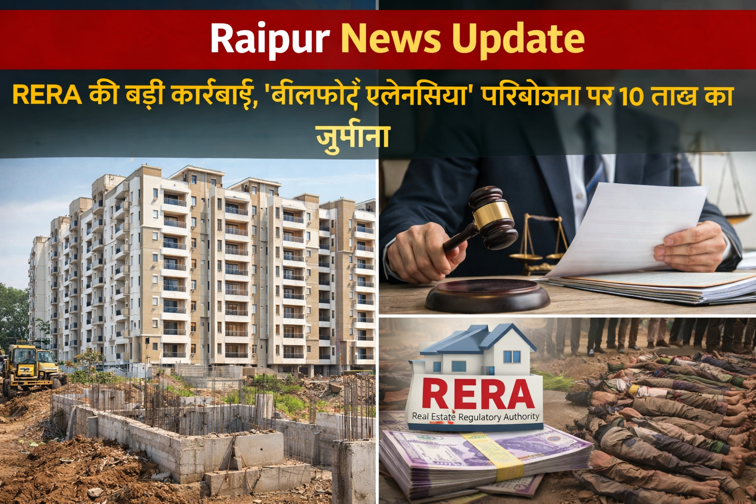 रायपुर स्थित ‘वॉलफोर्ट एलेन्सिया’ परियोजना के प्रमोटर के खिलाफ छत्तीसगढ़ रियल एस्टेट विनियामक प्राधिकरण (RERA) ने कड़ा कदम उठाया है। प्राधिकरण ने छत्तीसगढ़ रियल एस्टेट (विनियमन एवं विकास) अधिनियम, 2016 के तहत 10 लाख रुपए का आर्थिक दंड अधिरोपित किया है।